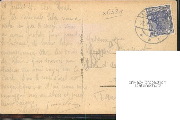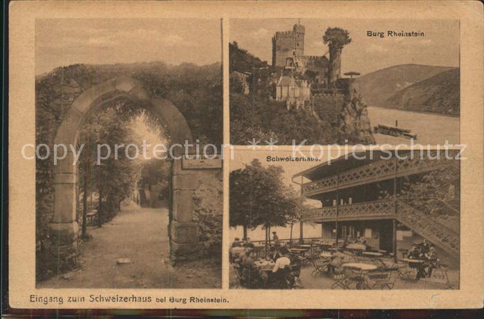 41756666 alte Postkarte Trechtingshausen Eingang zum Schweizerhaus Terrasse Burg Rheinstein postalisch gelaufen Erhaltung siehe scans KatCode: 11110007339058