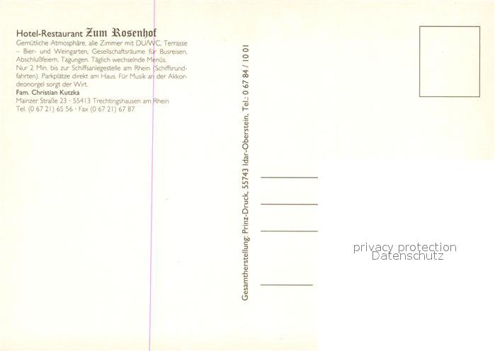 73725255 Trechtingshausen Hotel Restaurant zum Rosenhof postalisch nicht gelaufen Erhaltung siehe scans [FriedD77] KatCode: 11110007339058
