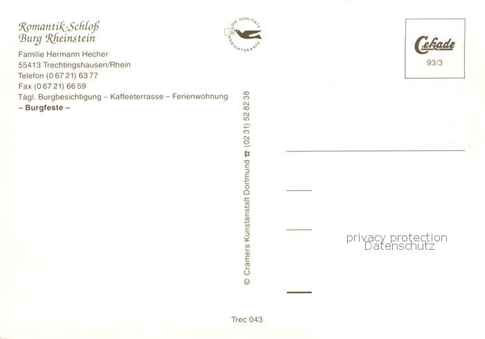 73801124 Trechtingshausen Romantik Schloss Burg Rheinstein Terrasse Gastraeume Zimmer postalisch nicht gelaufen Erhaltung siehe scans [WerneD78] KatCode: 11110007339058