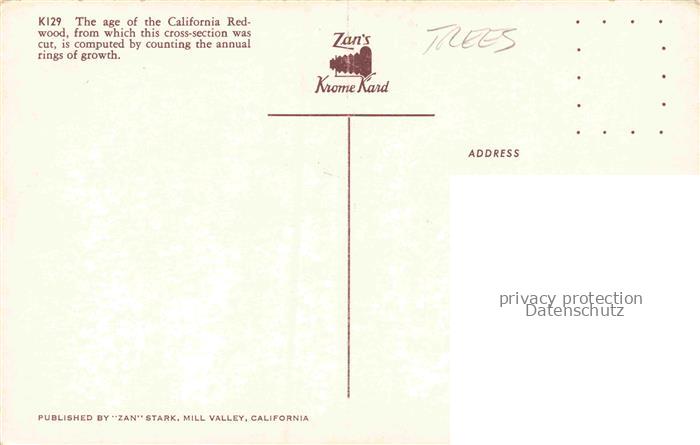 Trees Baeume Arbres Arboles K129 California Redwood cross section postalisch nicht gelaufen Erhaltung siehe scans [IrynaD87] Iryn Katcode 22360000000900