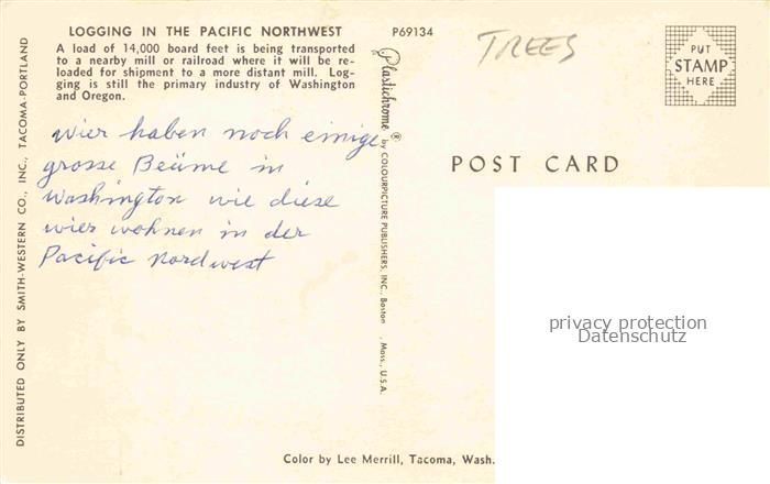 74085923 Trees Baeume Arbres Arboles Logging in the Pacific Northwest postalisch nicht gelaufen Erhaltung siehe scans [IrynaD87] Iryn Katcode 22360000000900