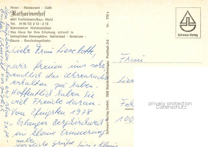 73651319 Treffelstein Hotel Restaurant Cafe Katharinenhof postalisch nicht gelaufen Erhaltung siehe scans [WerneD78] KatCode: 11110009372165