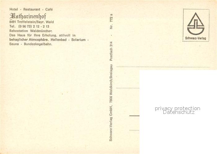 73651324 Treffelstein Hotel Restaurant Cafe Katharinenhof Empfang Heustadel Fremdenzimmer postalisch nicht gelaufen Erhaltung siehe scans [WerneD78] KatCode: 11110009372165
