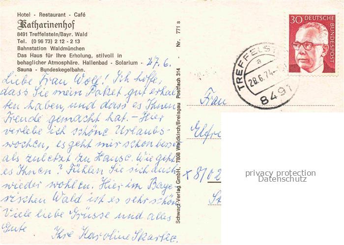 74049765 alte Postkarte Treffelstein Hotel Restaurant Café Katharinenhof Garten Terrasse postalisch gelaufen Erhaltung siehe scans [FriedD77] KatCode: 11110009372165