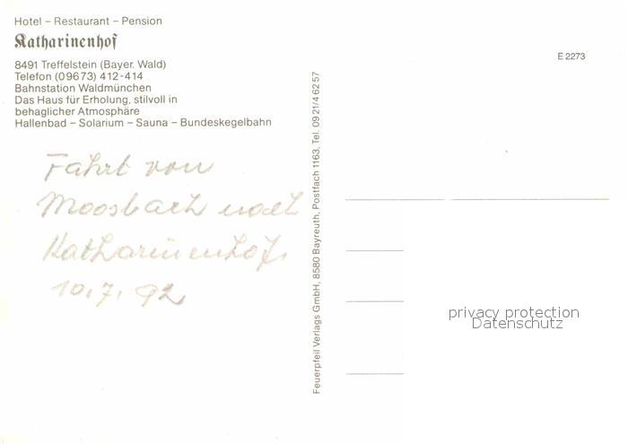 72867626 Treffelstein Hotel Restaurant Katharinenhof postalisch nicht gelaufen Erhaltung siehe scans [WerneD78] KatCode: 11110009372165