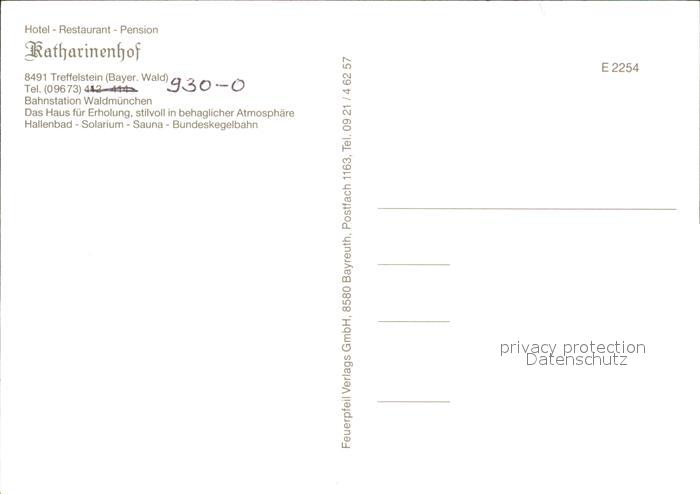 71972916 Treffelstein Hotel Restaurant Pension Katharinenhof postalisch nicht gelaufen Erhaltung siehe scans KatCode: 11110009372165