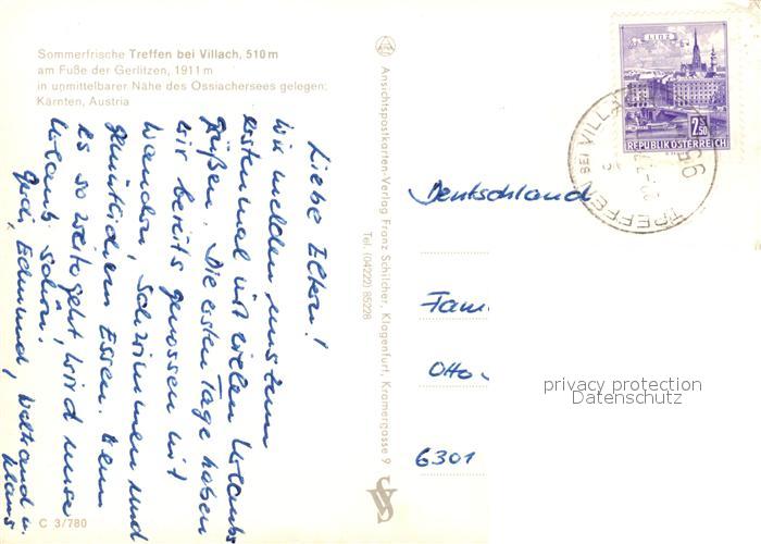 73356676 alte Postkarte Treffen Ossiacher See Kaernten Fliegeraufnahme mit Gerlitzen postalisch gelaufen Erhaltung siehe scans [WerneD78] KatCode: 11390211020724