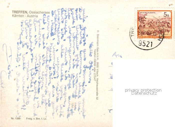 73304366 alte Postkarte Treffen Ossiacher See Kaernten Ortsmotiv mit Kirche Fliegeraufnahmen postalisch gelaufen Erhaltung siehe scans [FriedD77] KatCode: 11390211020724