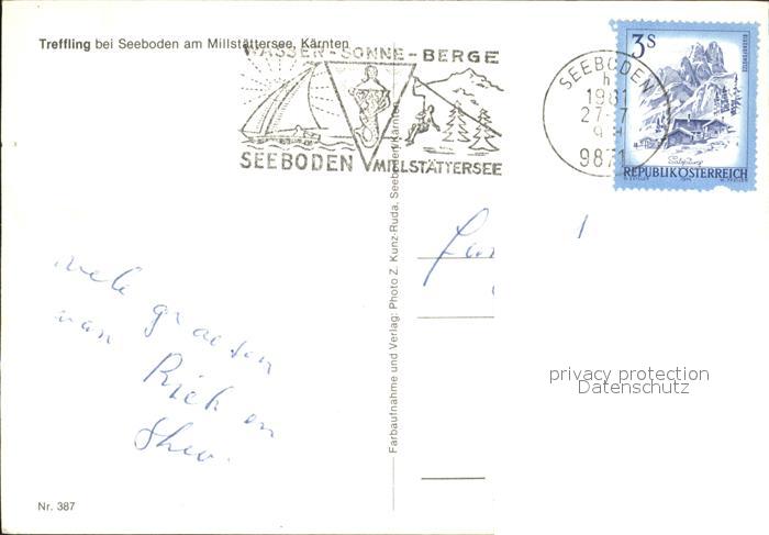 72092224 alte Postkarte Treffling am Millstaettersee Ortsansicht Panorama Dorfpartie postalisch gelaufen Erhaltung siehe scans KatCode: 11390212020634