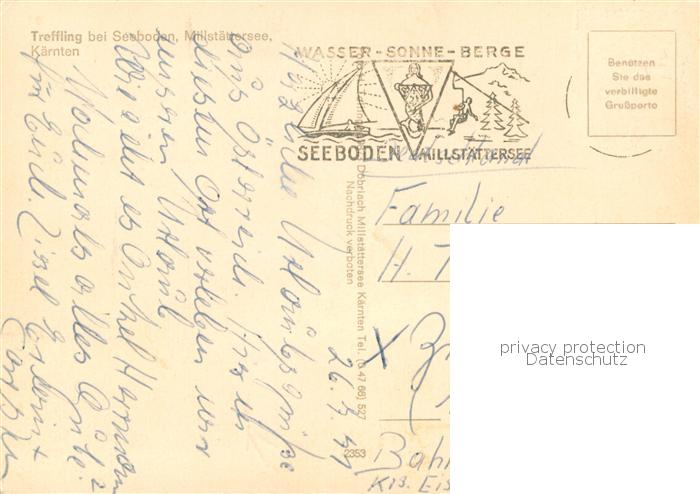 73754058 alte Postkarte Treffling Fliegeraufnahme mit Millstaettersee postalisch gelaufen Erhaltung siehe scans [WerneD78] KatCode: 11390212020634