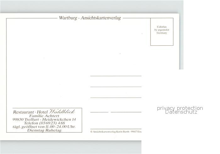 72482362 Treffurt Werra Restaurant Waldblick postalisch nicht gelaufen Erhaltung siehe scans KatCode: 11110016063076