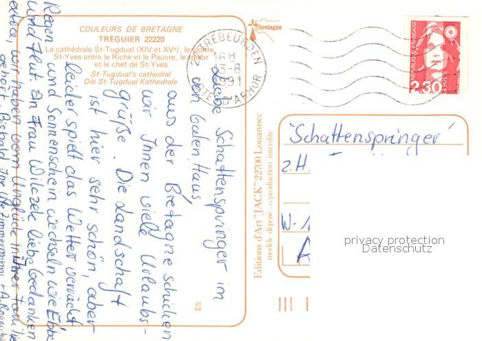 13144021 carte postale Treguier Cotes d Armor La Cathedrale St Tugdual Details postalisch gelaufen Erhaltung siehe scans [WerneD78] KatCode: 11170022322362