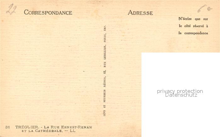 13547392 Treguier Cotes d Armor La Rue Ernest Renan et la Cathedrale postalisch nicht gelaufen Erhaltung siehe scans [WerneD78] KatCode: 11170022322362