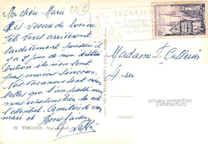 13536183 carte postale Treguier Cotes d Armor Vue Generale de la ville Rivière Jaudy postalisch gelaufen Erhaltung siehe scans [FriedD77] KatCode: 11170022322362