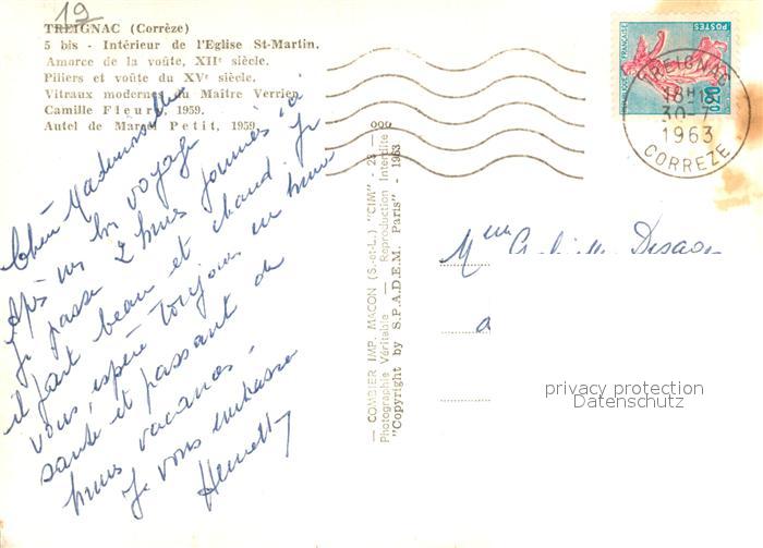 13594453 Treignac Intérieur de l’Eglise Saint Martin postalisch gelaufen Erhaltung siehe scans [FriedD77] carte postale Frie Katcode 11170019219269
