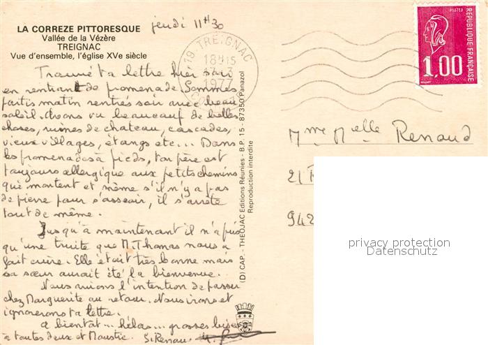 13590125 Treignac Vue d’ensemble l’eglise postalisch gelaufen Erhaltung siehe scans [WerneD78] carte postale Wern Katcode 11170019219269