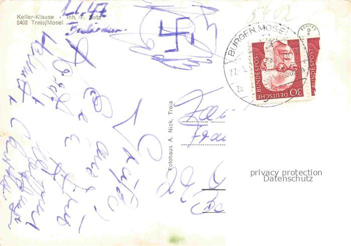 74166649 alte Postkarte Treis-Karden Mosel Rheinland-Pfalz Keller-Klause Bar Restaurant Mosel Freibad Weinberge Mehrbildkarte Gaststaette postalisch gelaufen Erhaltung siehe scans [Karloger] KatCode: 11110007135082