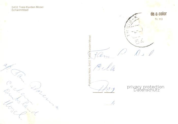 72949513 alte Postkarte Treis-Karden Schwimmbad postalisch gelaufen Erhaltung siehe scans [NatalD47] KatCode: 11110007135082