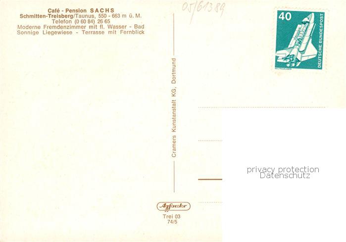 73862933 alte Postkarte Treisberg Schmitten Hessen Cafe Pension Sachs Gastraeume Terrasse Panorama postalisch gelaufen Erhaltung siehe scans [WerneD78] KatCode: 11110006434009