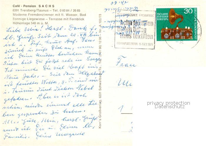 73862935 alte Postkarte Treisberg Schmitten Hessen Pension Cafe Sachs Terrasse Gaststube Panorama postalisch gelaufen Erhaltung siehe scans [WerneD78] KatCode: 11110006434009
