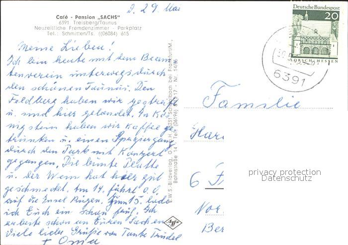 72098869 alte Postkarte Treisberg Totalansicht Panorama Cafe Pension Sachs postalisch gelaufen Erhaltung siehe scans KatCode: 11110006434009