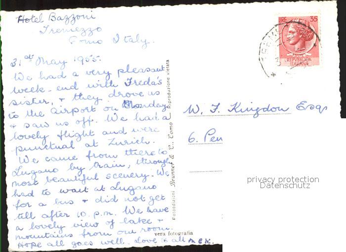 alte Postkarte Tremezzo Lago di Como Albergo Bazzoni Fahrgastschiff postalisch gelaufen Erhaltung siehe scans