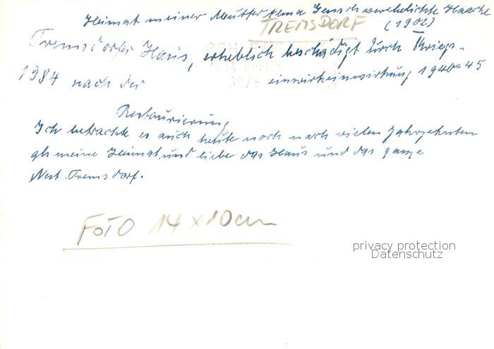 73768912 Tremsdorf Tremsdorfer Haus postalisch nicht gelaufen Foto (keine Postkarte) Erhaltung siehe scans [FriedD77] KatCode: 11110012069454