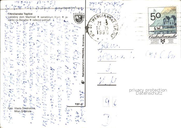 old postcard Trencianske Teplice Liecebny dom Machnac Sanatorium Krym jazierko na Baracke celkovy pohlad postalisch gelaufen Erhaltung siehe scans