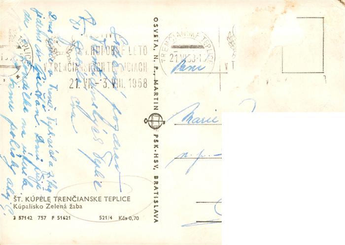 old postcard Trencianske Teplice SK Kupalisko Zelena zaba postalisch gelaufen Erhaltung siehe scans [WerneD78]