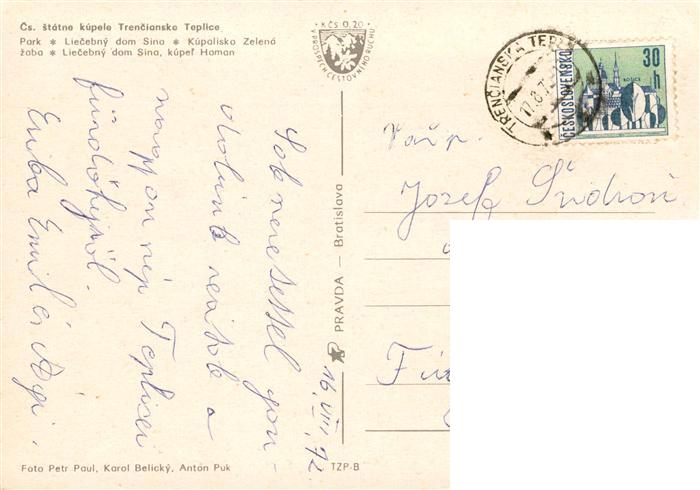 old postcard Trencianske Teplice SK Park Liecebny dom Sina Kupaliska Zelena roba Kupel Hamon postalisch gelaufen Erhaltung siehe scans [FriedD77]