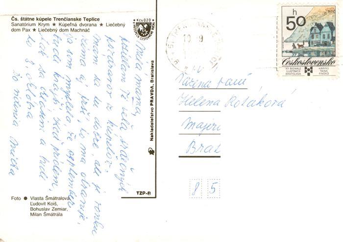 old postcard Trencianske Teplice SK Sanatorium Krym Kupelna dvorana Liecebny dom Pax Liecebny dom Machnac postalisch gelaufen Erhaltung siehe scans [WerneD78]