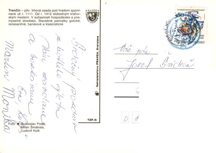 old postcard Trencin Trentschinteplitz SK Motive Stadtzentrum Bruecke postalisch gelaufen Erhaltung siehe scans [FriedD77]