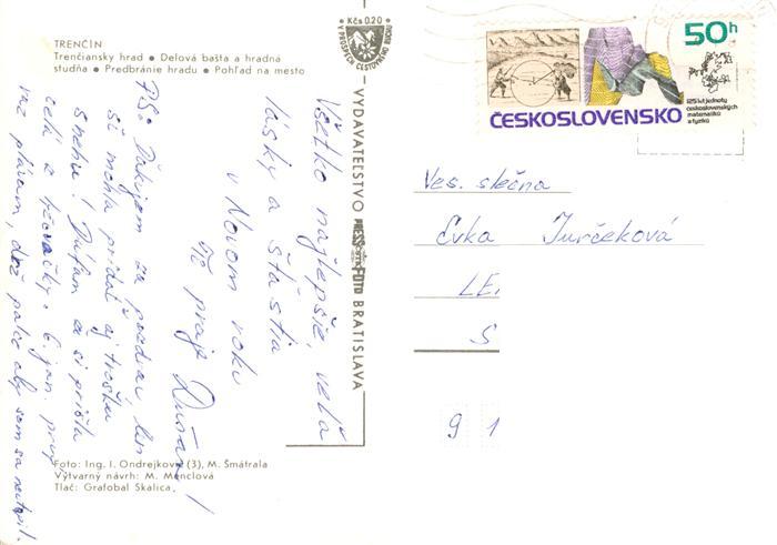 old postcard Trencin Trentschinteplitz SK Trensciansky hrad Delova basta a hradne studna Predbranie hradu Pohlad na mesto postalisch gelaufen Erhaltung siehe scans [FriedD77]