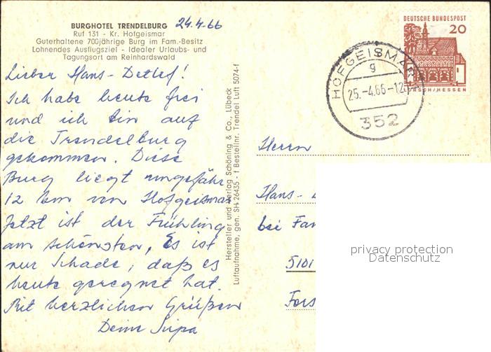 72288214 alte Postkarte Trendelburg Burghotel postalisch gelaufen Erhaltung siehe scans KatCode: 11110006633025