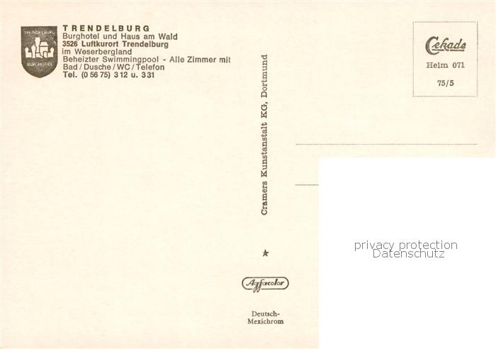 73812960 Trendelburg Diemel Burghotel und Haus am Wald postalisch nicht gelaufen Erhaltung siehe scans [WerneD78] KatCode: 11110006633025