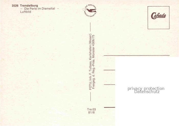 74040525 Trendelburg Diemel Deisel Hessen Panorama Perle im Diemeltal postalisch nicht gelaufen Fliegeraufnahme Erhaltung siehe scans [FriedD77] KatCode: 11110006633025