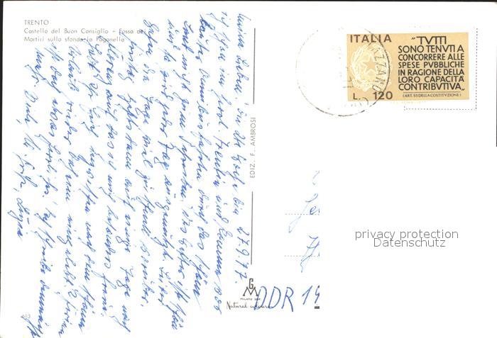 old postcard Trento Castello del Buon Consiglio postalisch gelaufen Erhaltung siehe scans