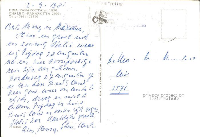 old postcard Trento Chalet Panarotta postalisch gelaufen Erhaltung siehe scans