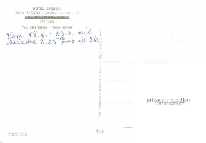 Trento Hotel Everest postalisch nicht gelaufen Erhaltung siehe scans [AndreD76]
