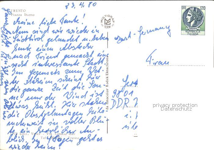 old postcard Trento Piazza Duomo postalisch gelaufen Erhaltung siehe scans