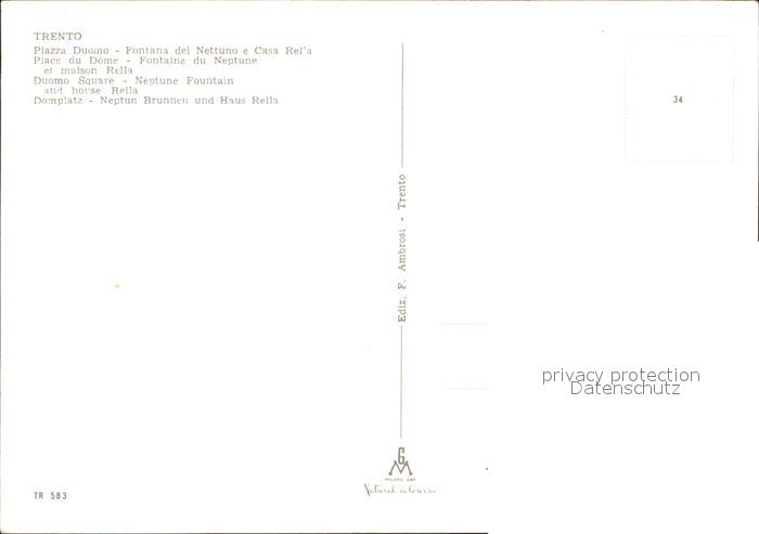Trento Piazza Duomo Fontana del Nettuno Casa Rella postalisch nicht gelaufen Erhaltung siehe scans