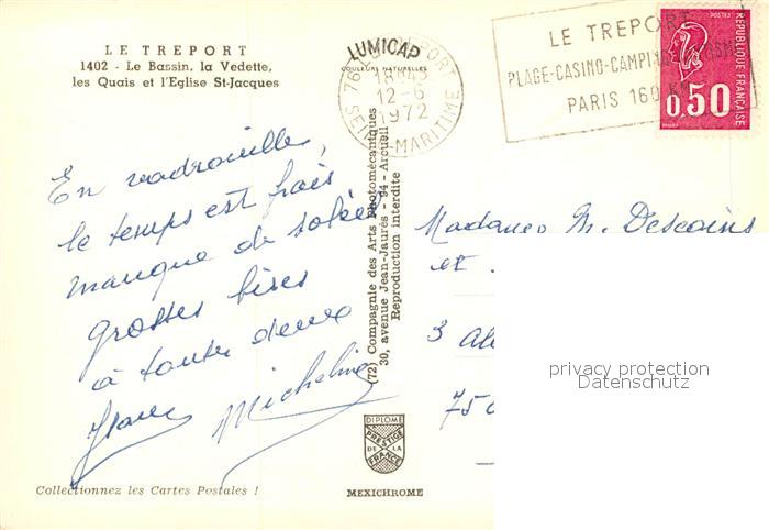 13521929 carte postale Treport Le Bassin Vedette Quais Eglise Saint Jacques postalisch gelaufen Erhaltung siehe scans [KathaD81] KatCode: 11170076176711
