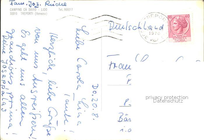 old postcard Treporti Cavallino Camping ca Savio Lido postalisch gelaufen Erhaltung siehe scans