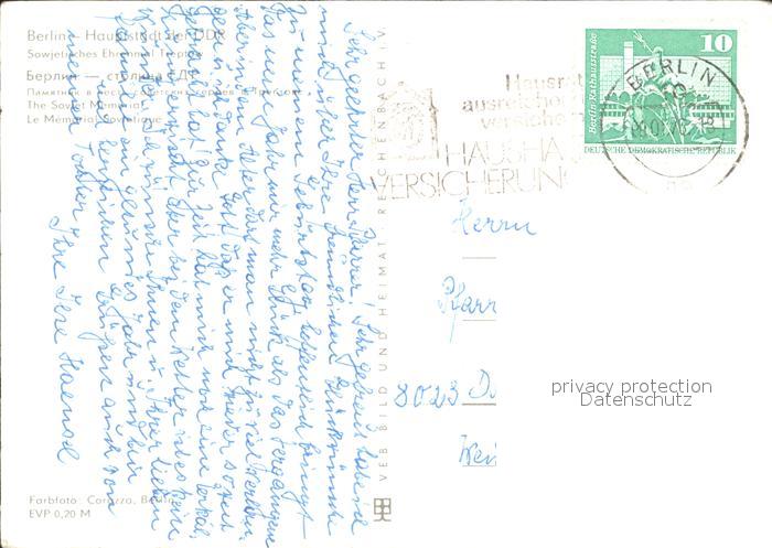 72360758 alte Postkarte Treptow Berlin Sowjetische Ehrenmal postalisch gelaufen Erhaltung siehe scans KatCode: 11110011000000