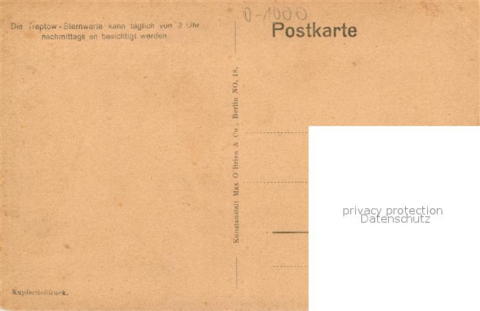 43002186 Treptow Berlin Sternwarte Kupfertiefdruck postalisch nicht gelaufen Erhaltung siehe scans [FriedD77] KatCode: 11110011000000