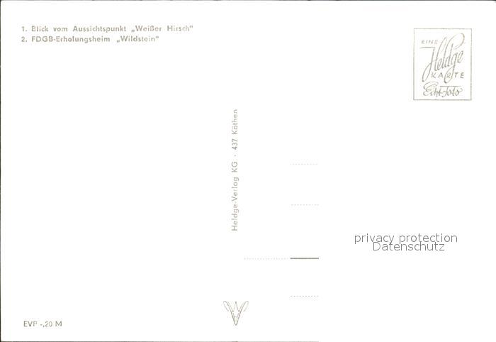 72328310 Treseburg Harz Aussichtspunkt Weisser Hirsch FDGB Erholungsheim Wildstein postalisch nicht gelaufen Erhaltung siehe scans KatCode: 11110015085340