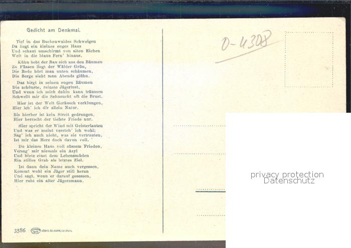 42417909 Treseburg Harz Dambachshaus Pfeils Denkmal Roehrender Hirsch Gedicht am Denkmal postalisch nicht gelaufen Erhaltung siehe scans KatCode: 11110015085340