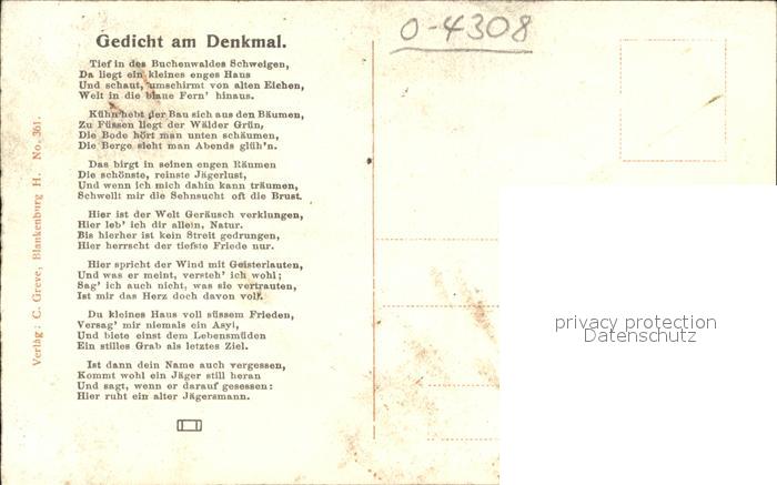 42437969 Treseburg Harz Dammbachshaus Pfeildenkmal Gedicht postalisch nicht gelaufen Erhaltung siehe scans KatCode: 11110015085340