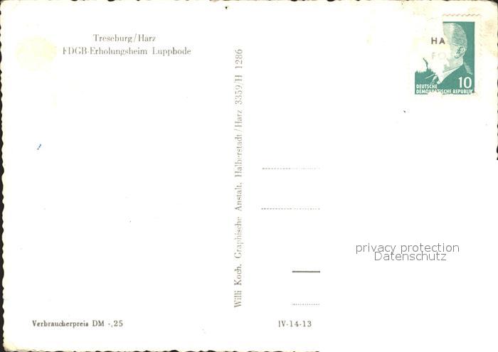 72180178 alte Postkarte Treseburg Harz FDGB Erholungsheim Luppbode postalisch gelaufen Erhaltung siehe scans KatCode: 11110015085340
