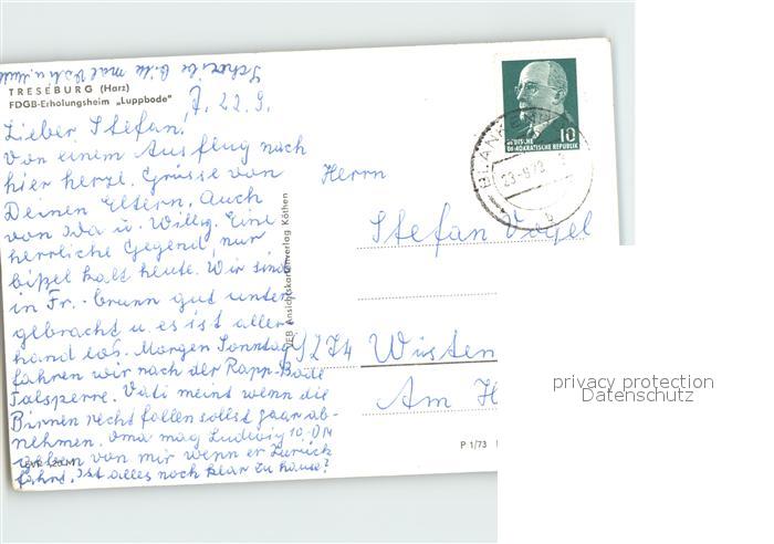 72015320 alte Postkarte Treseburg Harz FDGB Erholungsheim Luppbode postalisch gelaufen Erhaltung siehe scans KatCode: 11110015085340